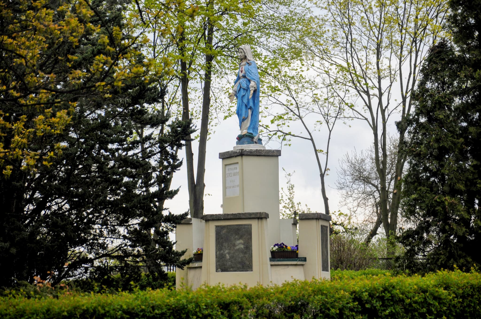 Figura Matki Bożej przed naszym kościołem.