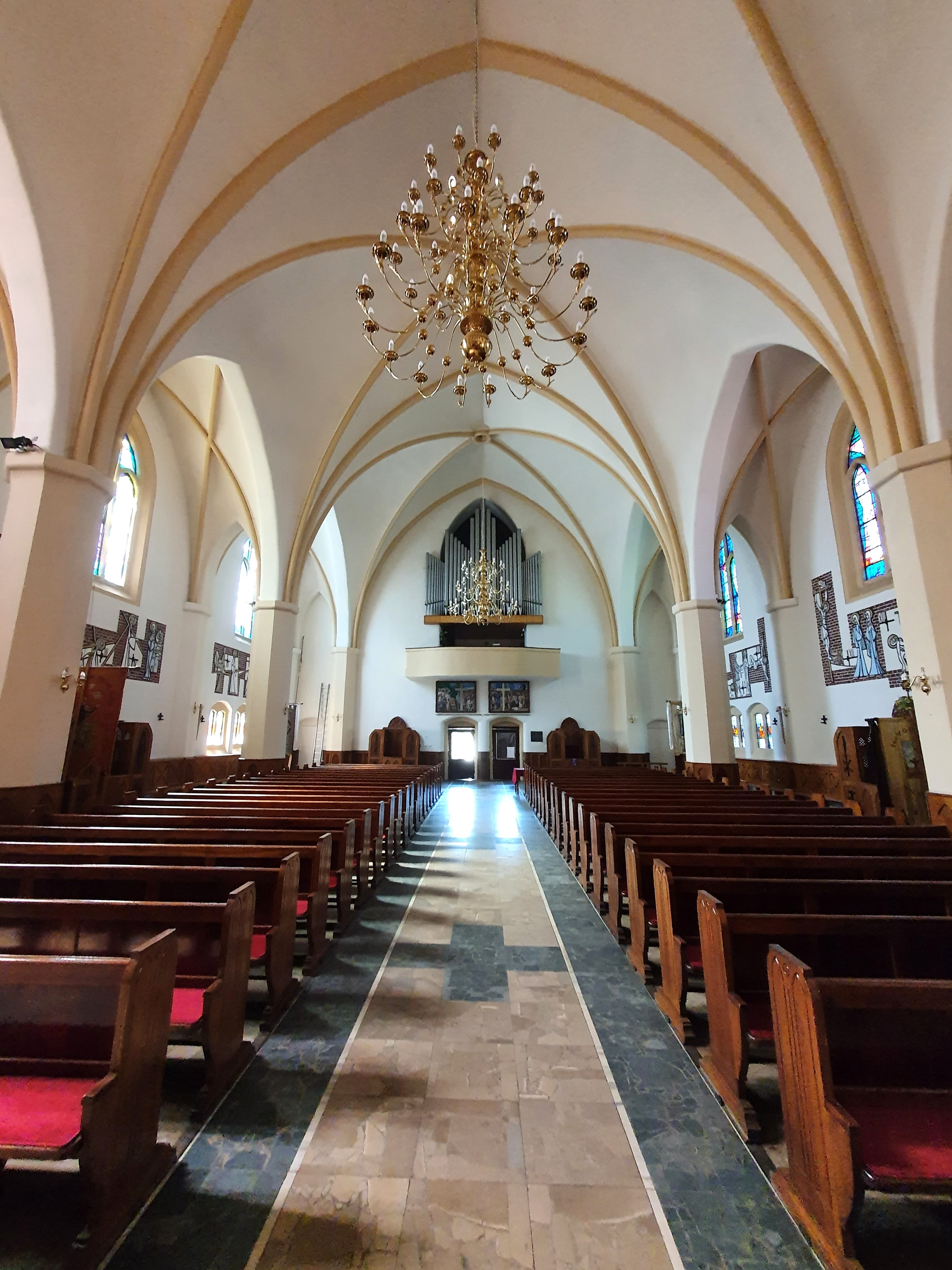 Fot.: główna nawa Kościoła Morskiego, widok w kierunku wyjścia.
