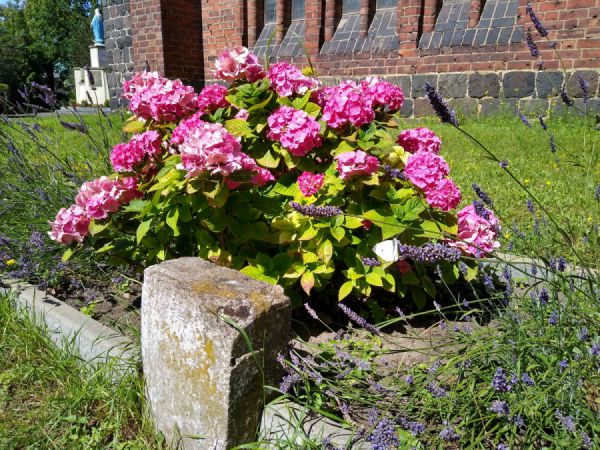 Fot.: Kwitnące kwiaty w naszej małej rabatce, położonej przy wschodniej ścianie naszego Kościoła Morskiego.